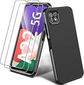 Amazon Com Imbzbk Designed For Samsung Galaxy A22 5g Case Not Fit 4g With 2 Pack Tempered Glass Screen Protector Hard Pc Back Flexible Frame Heavy Duty Shockproof Phone Case Cover For